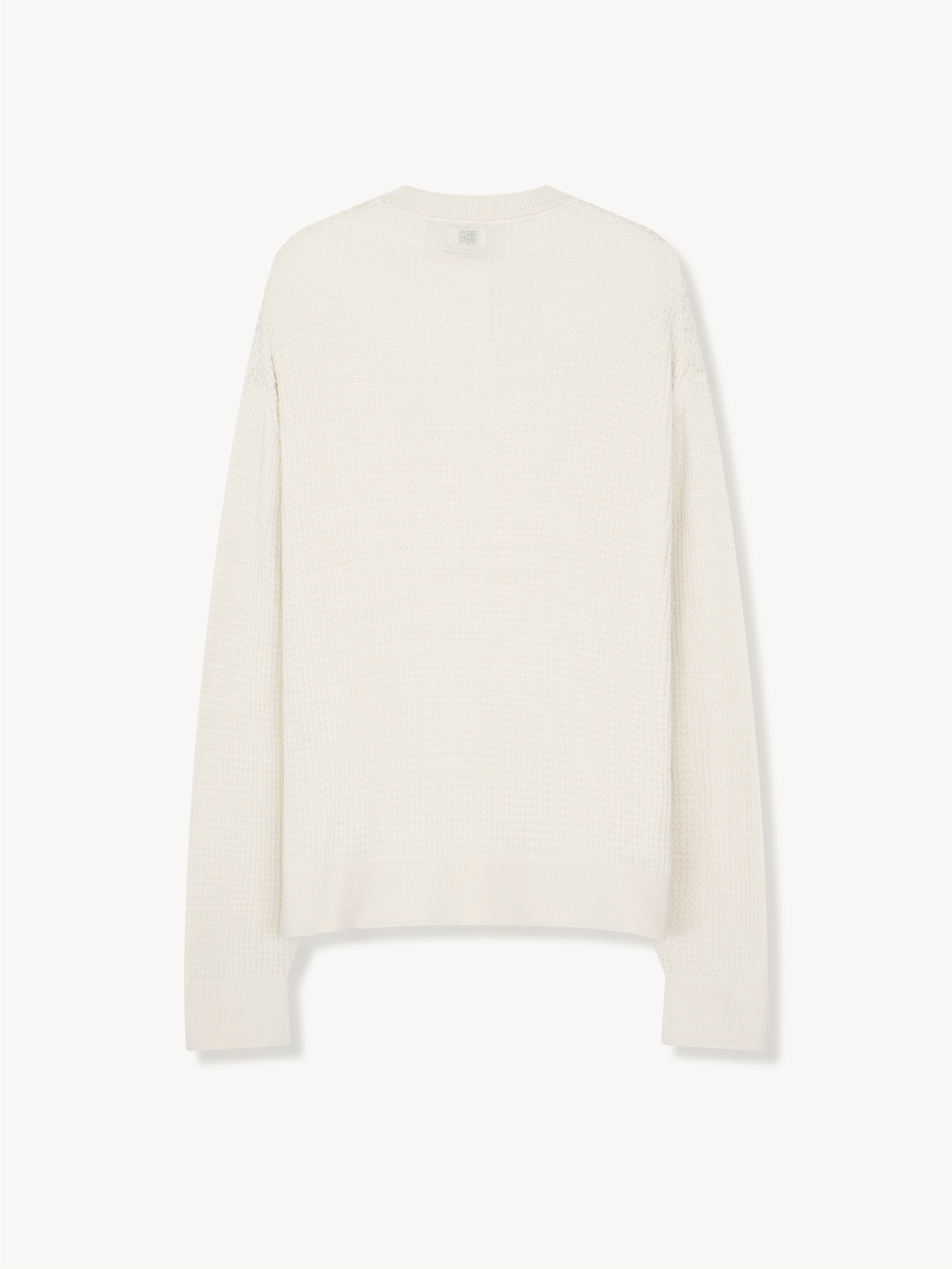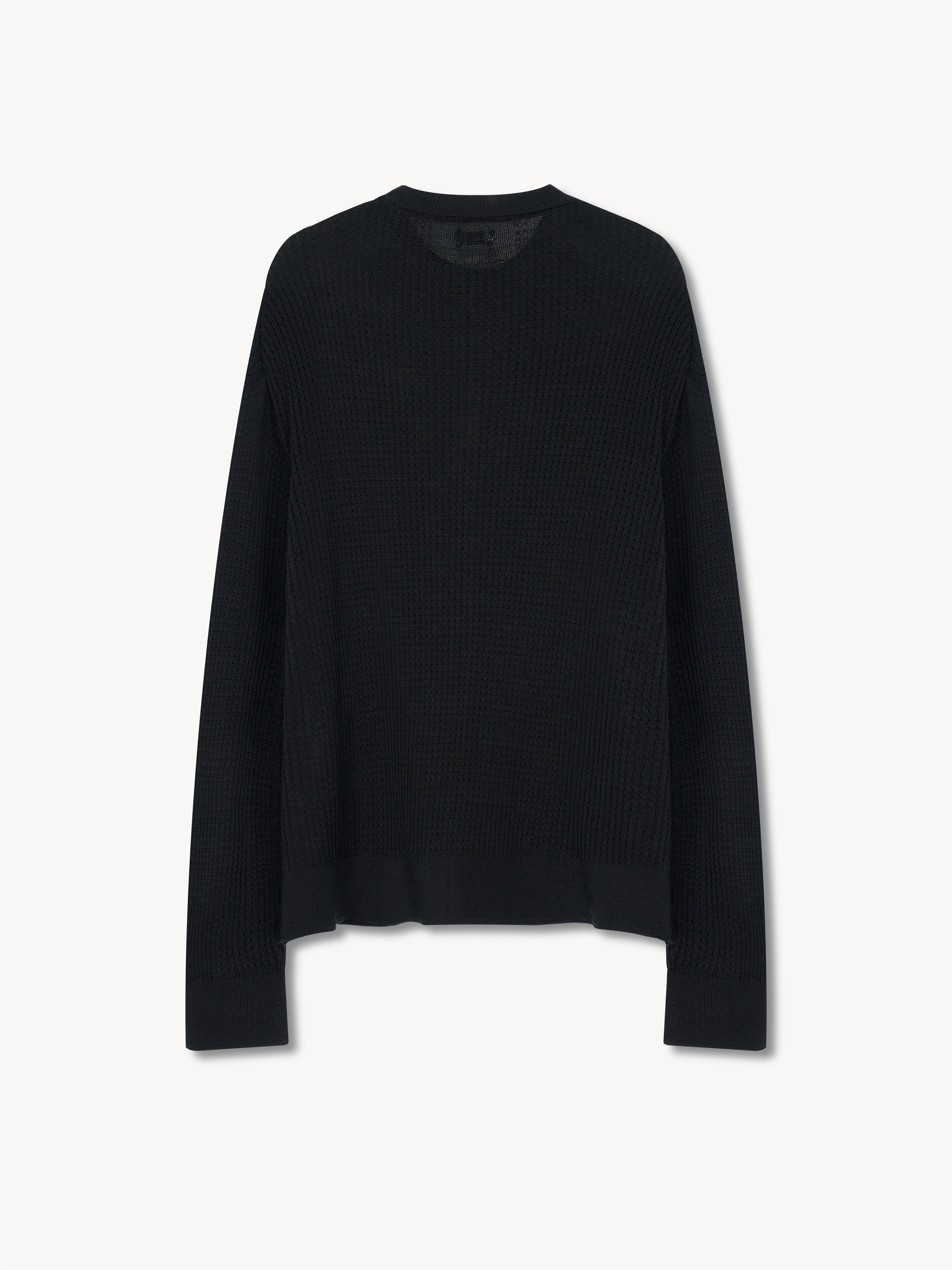 Waffle knit top in pure silk. The sweater has a standard fit and is true to size.