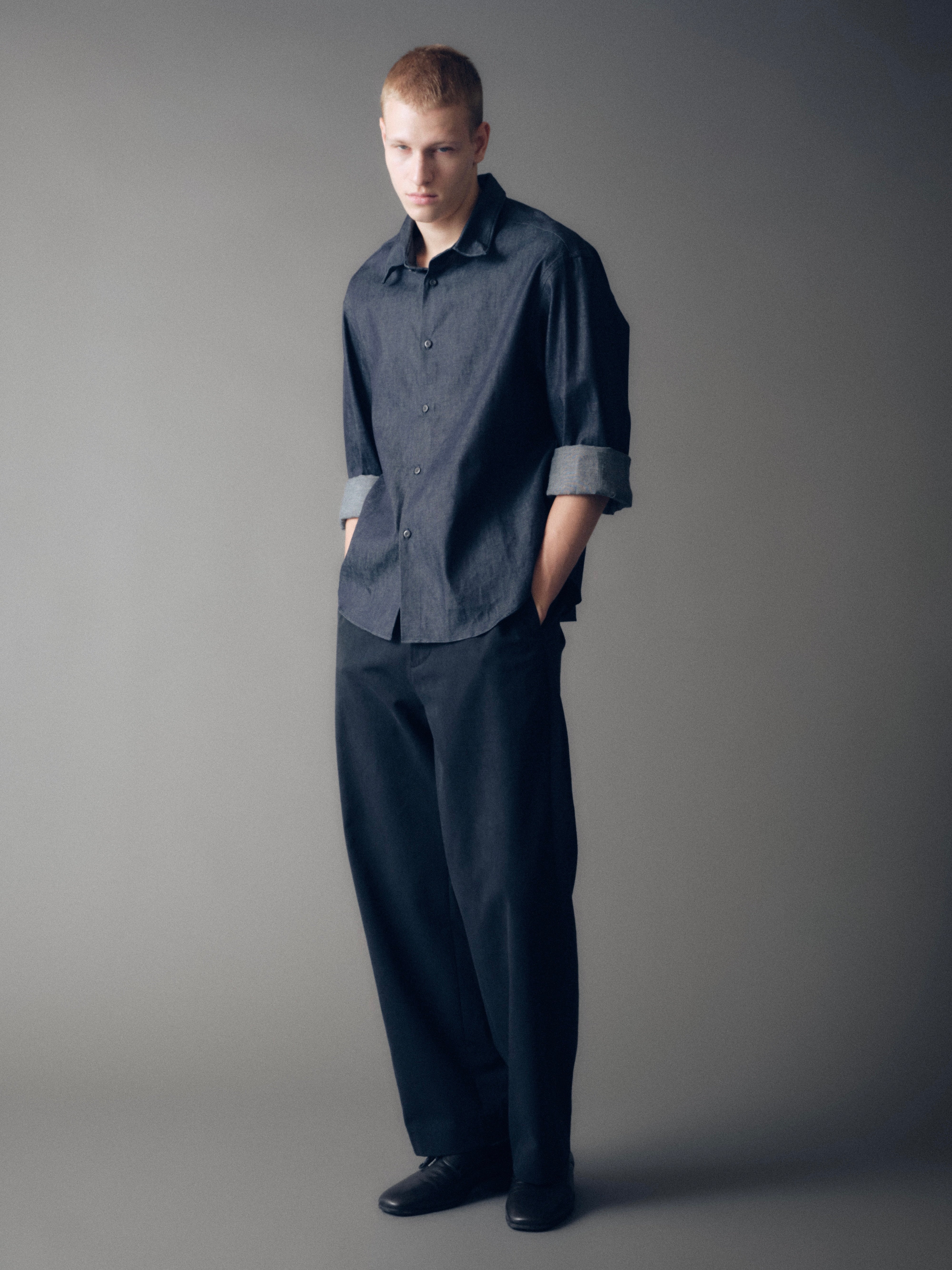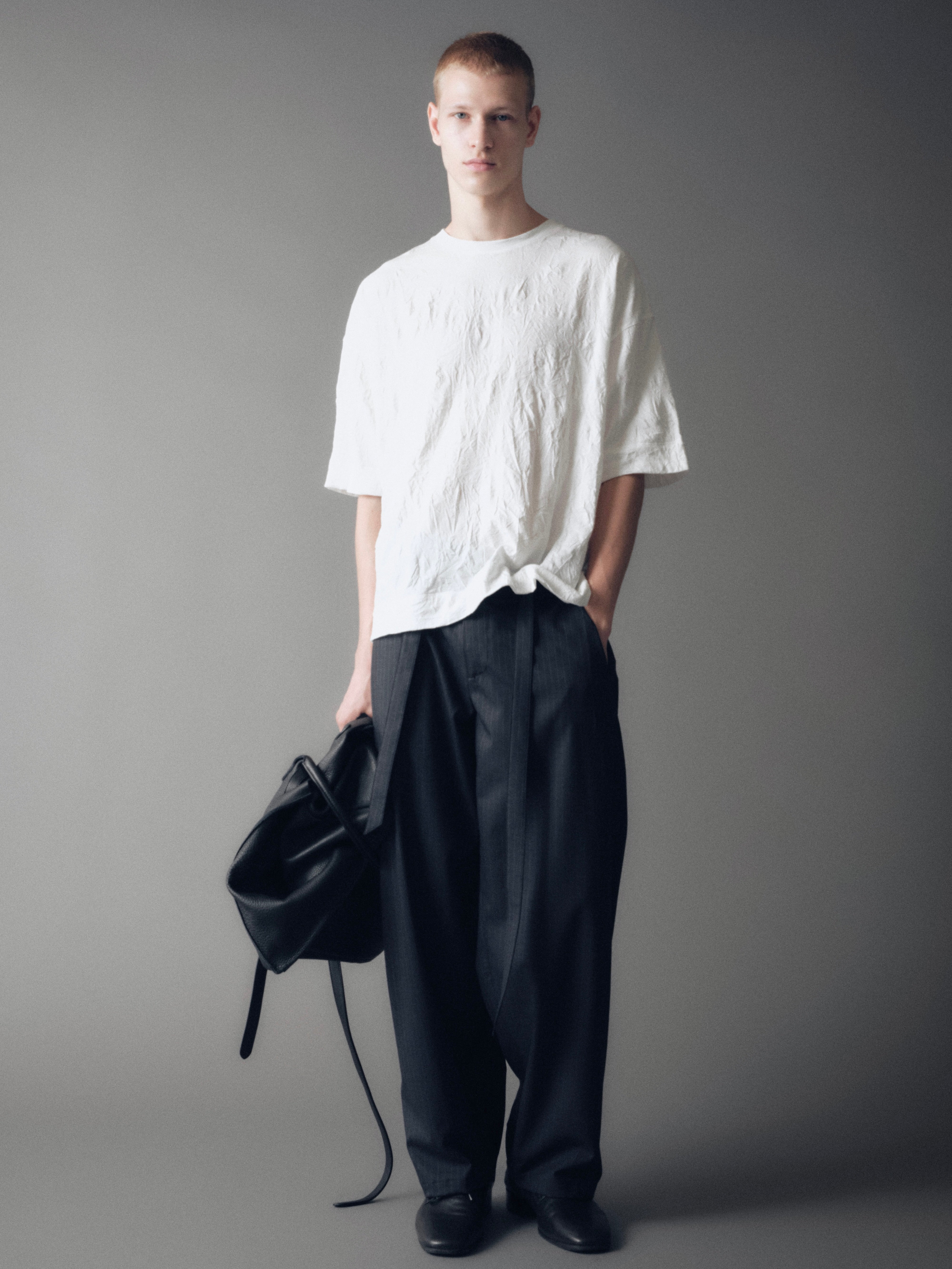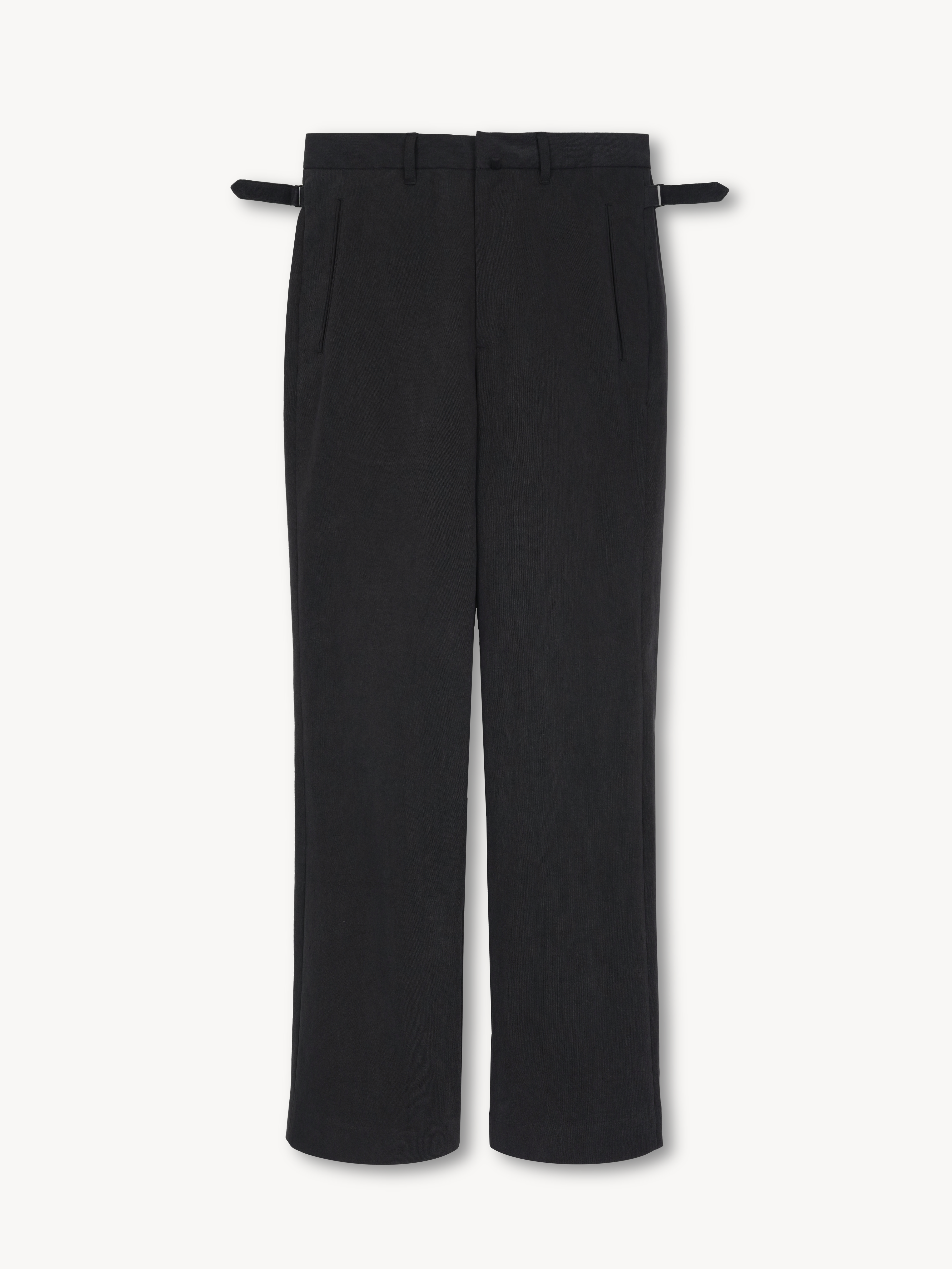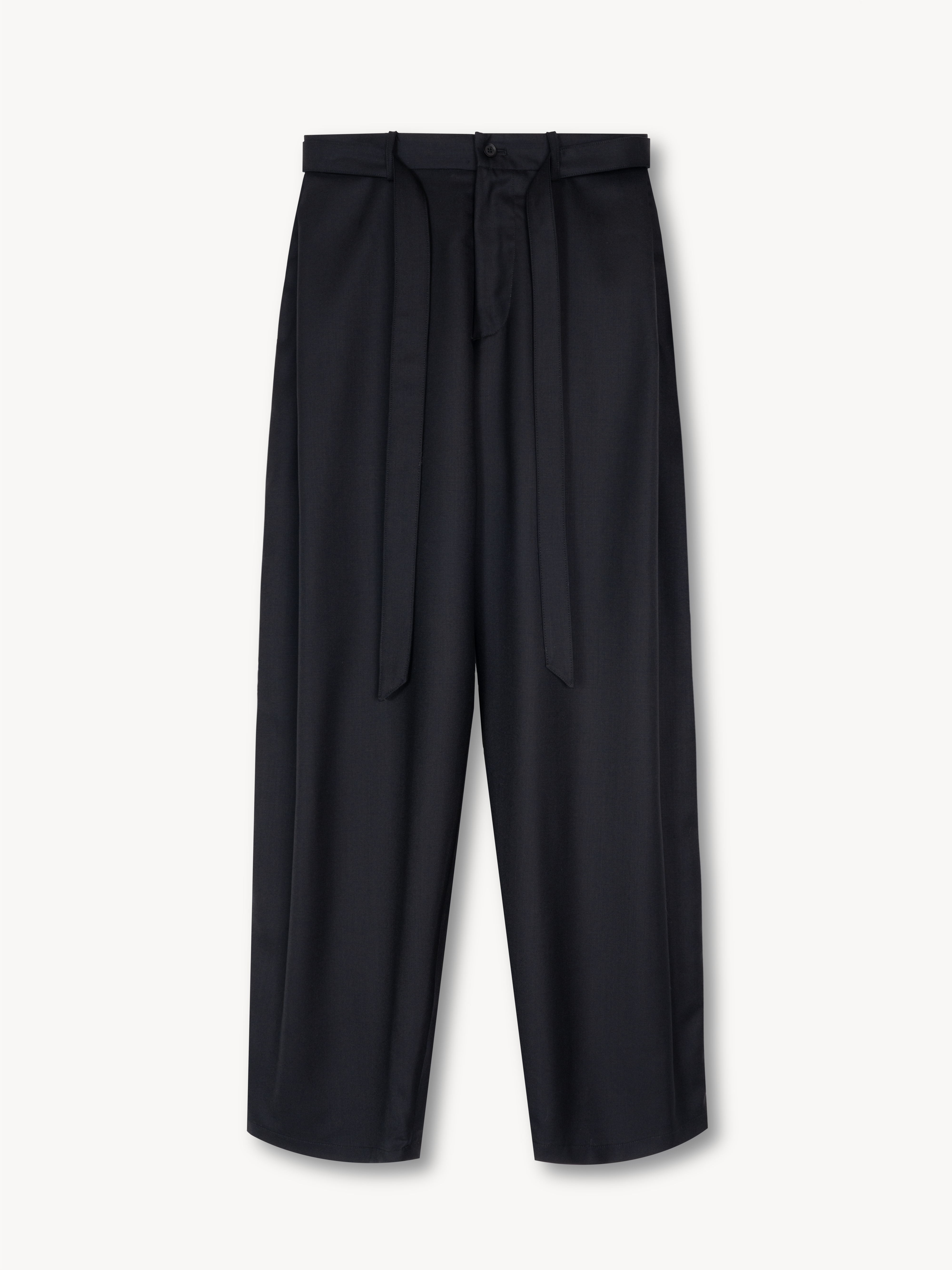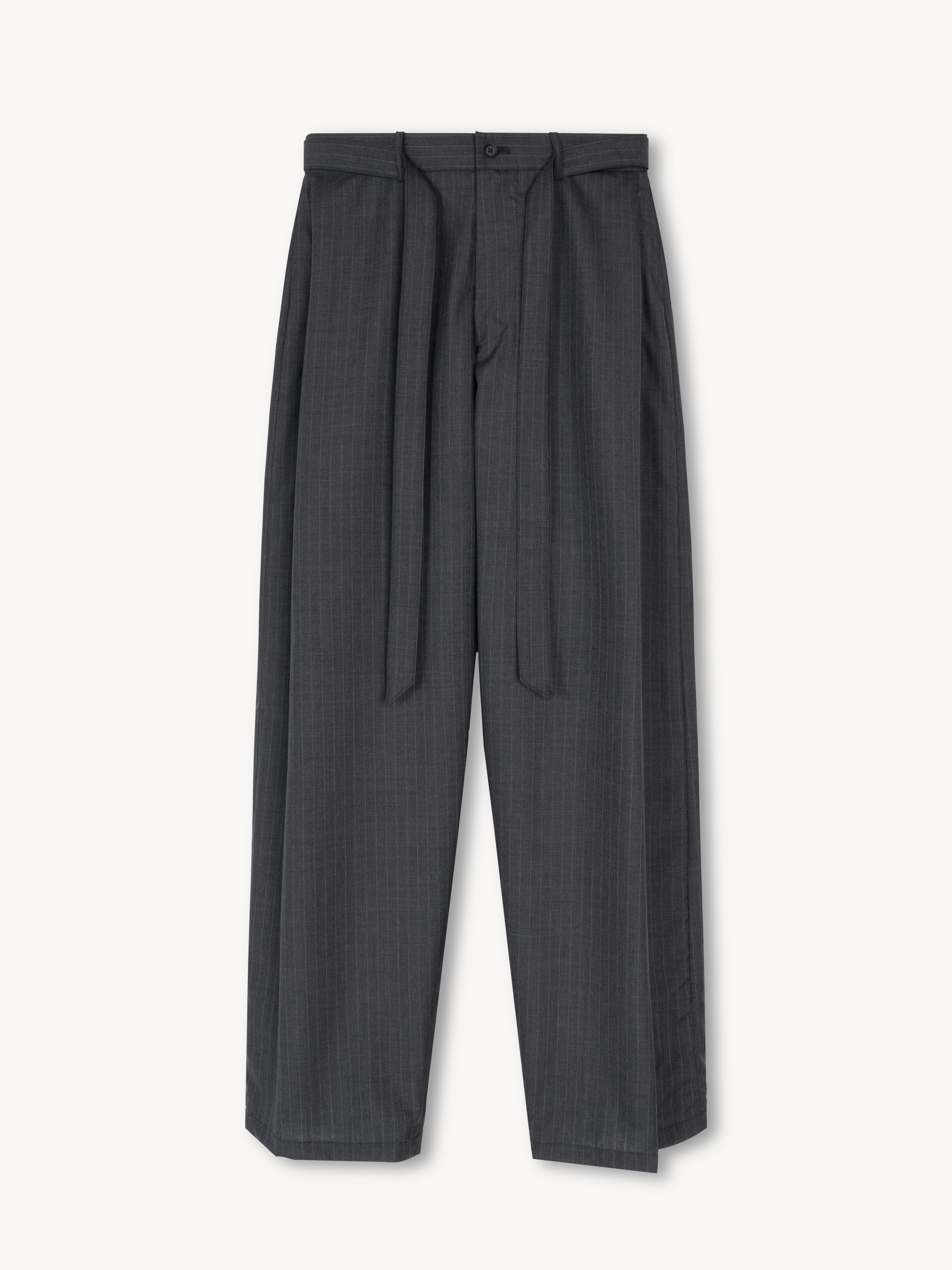 Ren Pinstripe Belted Tuck Trousers in Wool
