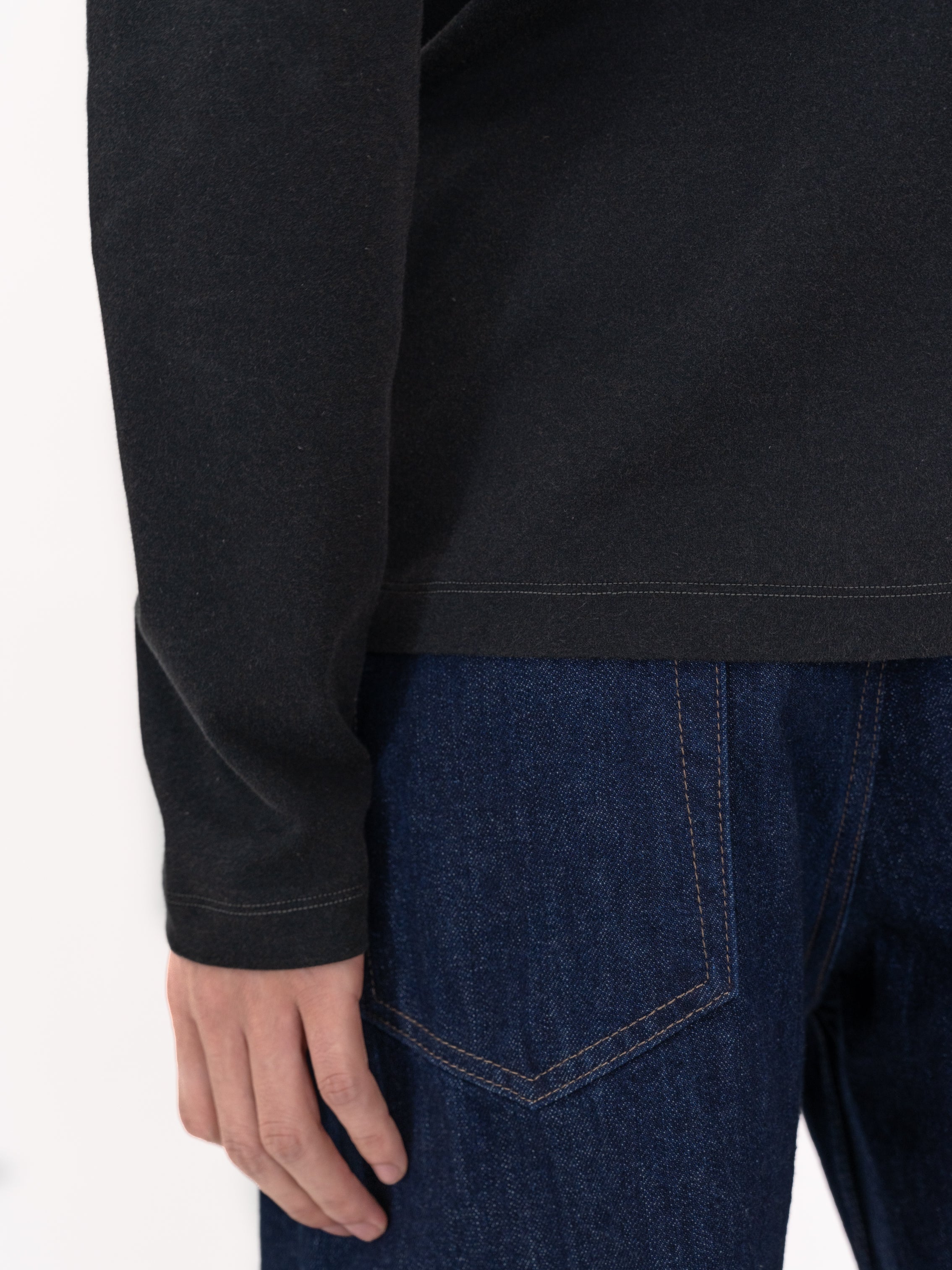 Contrast Stitch Long-sleeve Top in Supima Cotton