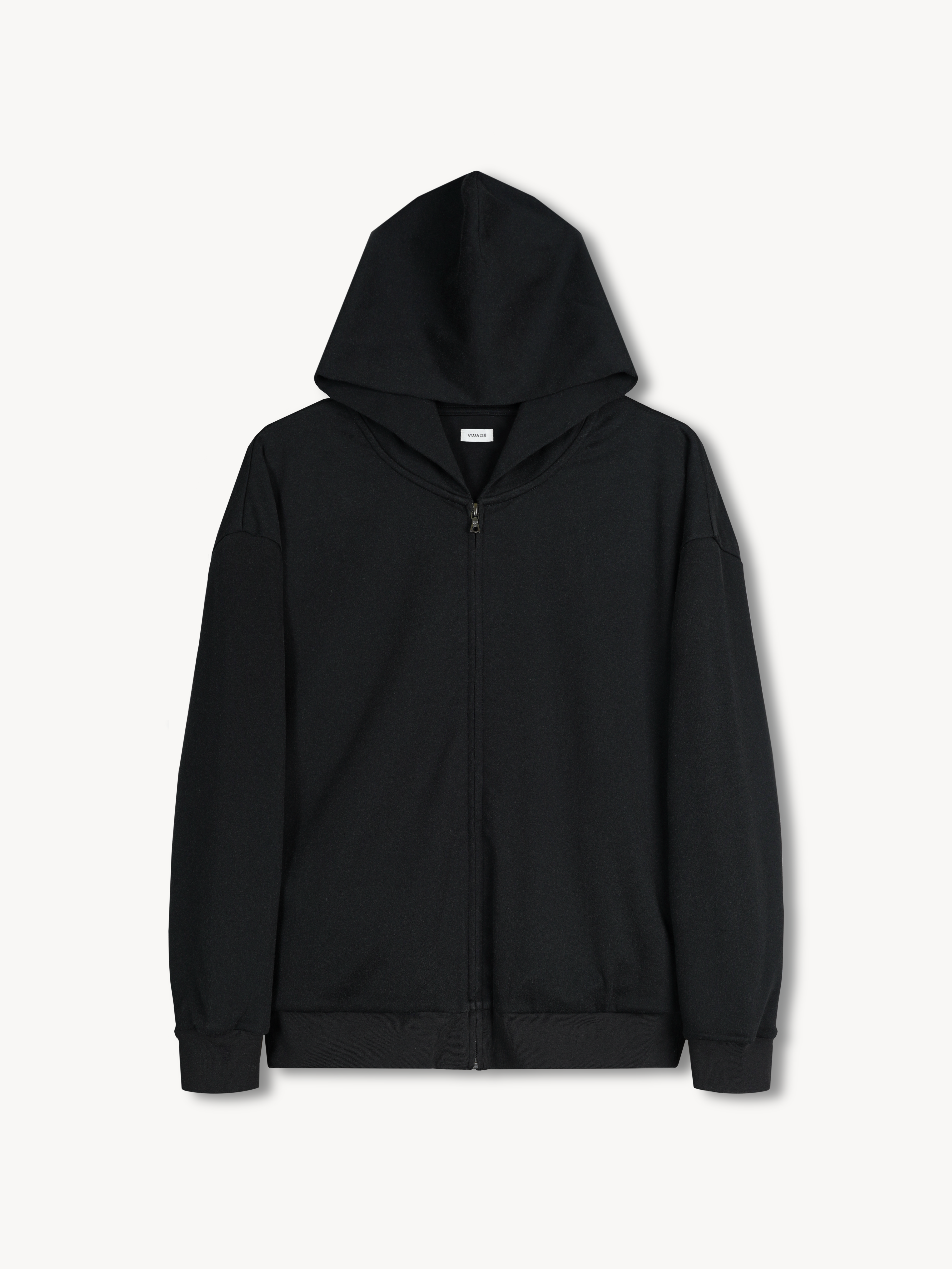 Double layered zip hoodie made with washed suvin cotton jersey fabric. The hoodie features hidden side pockets and has dropped shoulders.