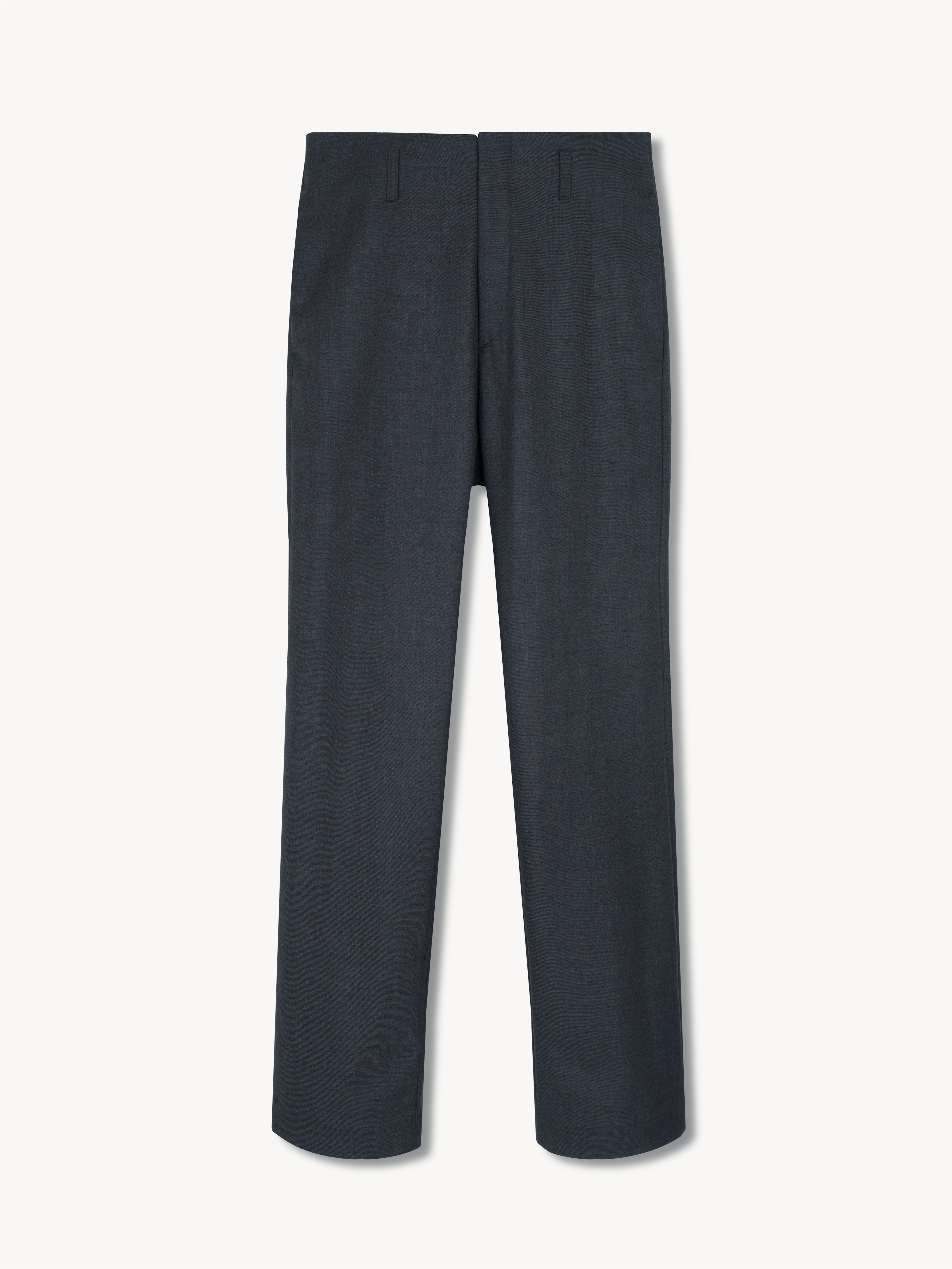 Straight leg trousers made with Super 100s wool fabric. The trousers are constructed with a seamless waistband complemented RiRi fastener and hook closure.