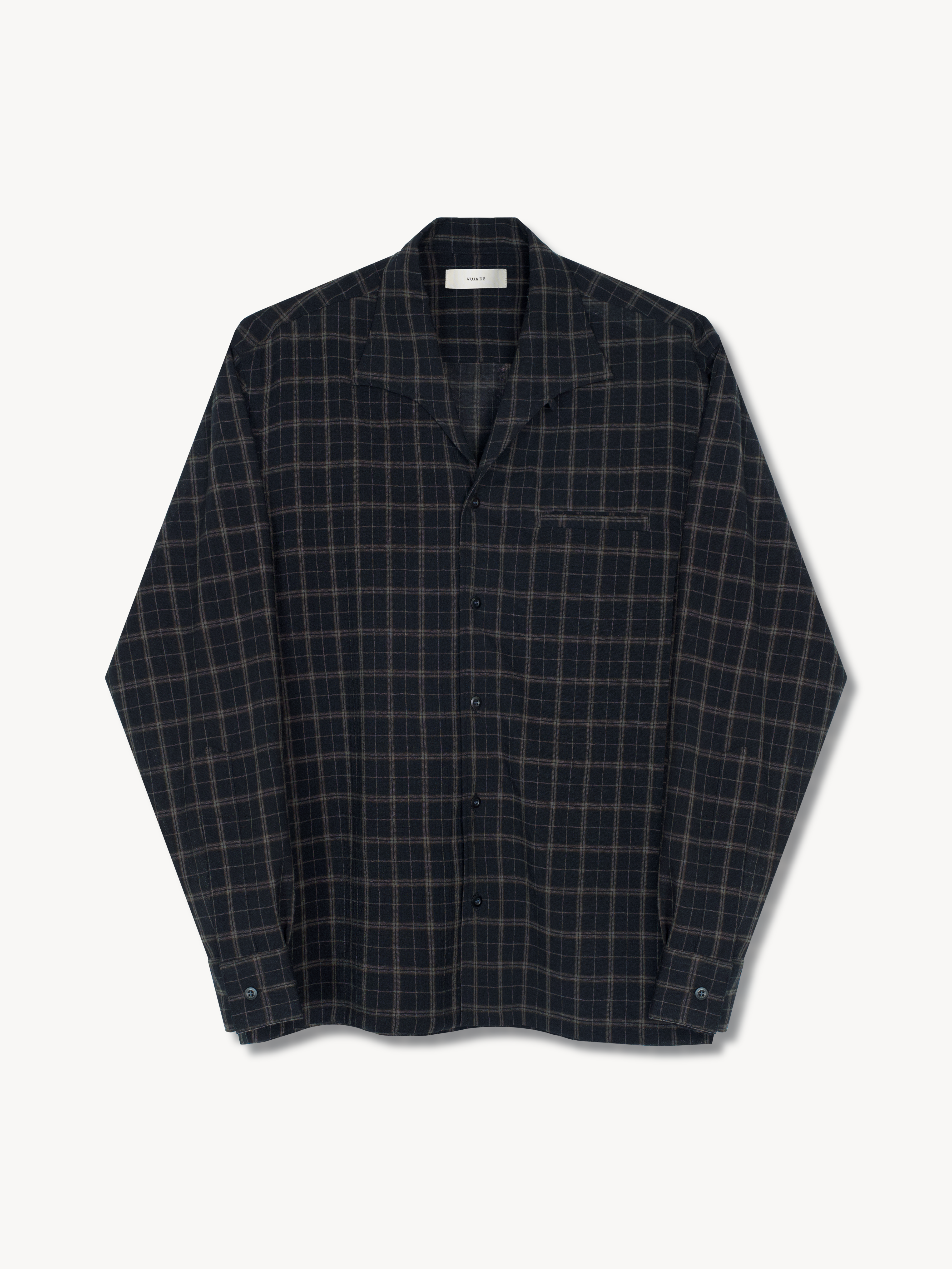 Capri collared plaid shirt in linen-like wool fabric. The shirt features front chest pocket and nacre buttons.